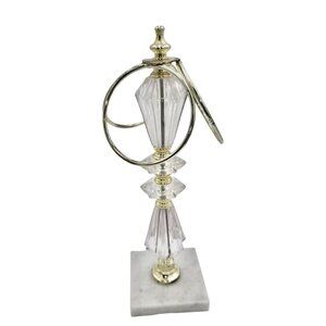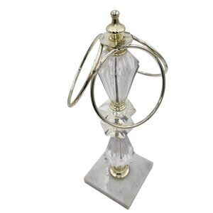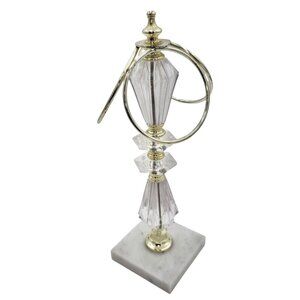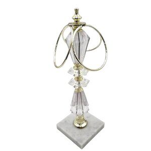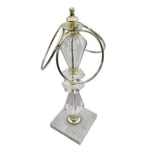 This elegantly designed 3-ring towel holder features a crystal and gold-tone metal structure atop a marble base. A stylish and functional addition to bathroom countertops. Durable Metal Design Compact Countertop Size. c. 1970s