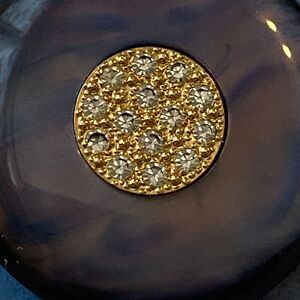 Carded Button Pearl Lucite Blue Rhinestones 1"