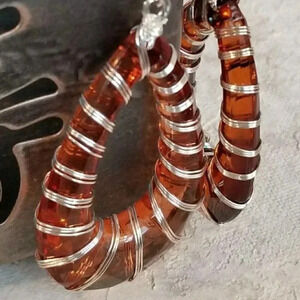 Retro 80s Lucite and Wire Open Teardrop Earrings