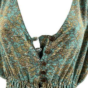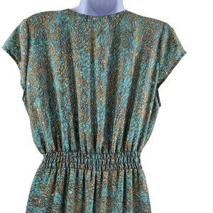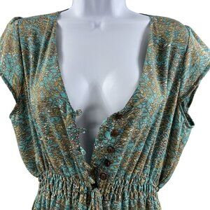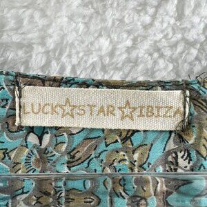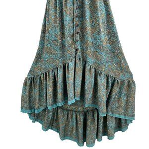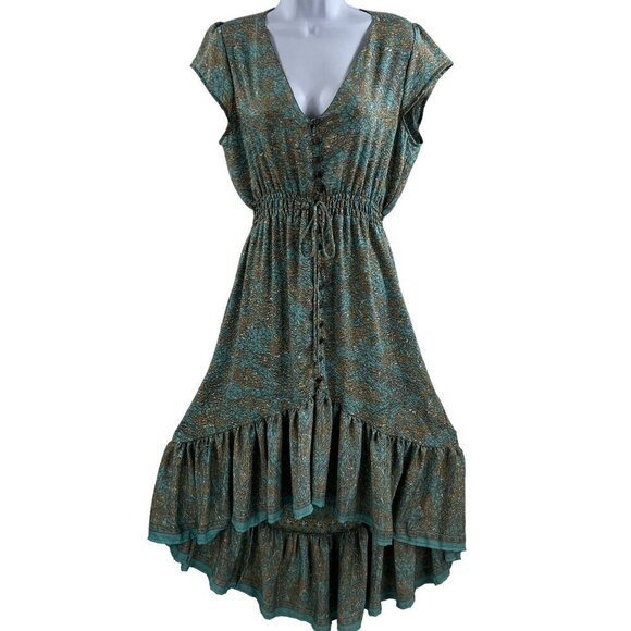 Luck Star Ibiza 100% Silk High Low Button Up Midi Dress Ruffled Hem Unique Print