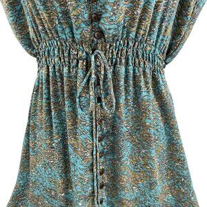 Versatile and stylish dress suitable for casual outings or events. Features floral pattern, button front, and ruffled hem.