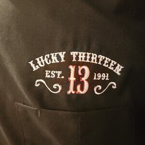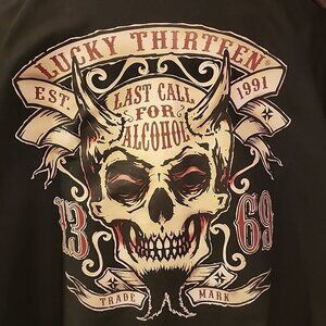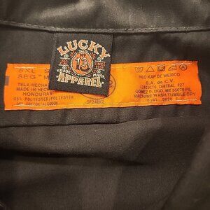 Lucky 13 Red Kap Mechanic Skull Goth Tattoo Skull Men's 5X Black Button Shirt