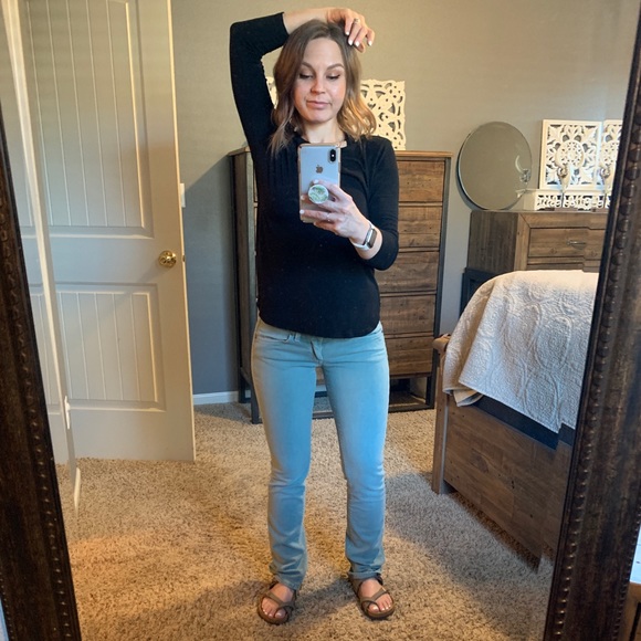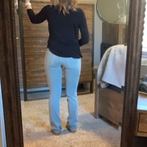 Sage green color, 31" inseam, Lucky Brand by Gene Montesano.. Made in USA, 92% cotton 8% spandex, Zoe Straight