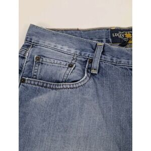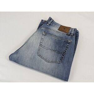 The Lucky Brand 181 Jeans for men in size 32x32 are a stylish choice for those looking for a relaxed straight fit denim in a classic blue color. Made of 100% cotton denim with a medium wash, these jeans feature a Y2K fade for a trendy look. The distressed detailing adds a unique touch to the overall design, making them a versatile addition to any man's wardrobe. Perfect for casual wear, these Lucky Brand jeans are a comfortable and fashionable choice for everyday wear.