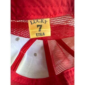 Lucky 7 USA Shark Embroidered Red & Black Trucker Hat Adjustable