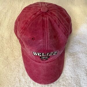 Stylish pink cap featuring 'Belize 1981 CA' embroidery. Perfect for casual wear.