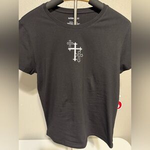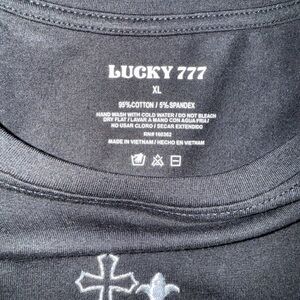 Lucky 777 Black T-Shirt with Cross Embroidery - Size XL