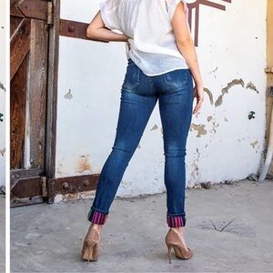 Lucky And Blessed Women's Dark Wash With Serape Patches Jeans