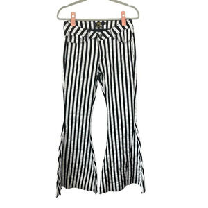 Lucky & Blessed Beetlejuice Black and White Striped Flare Leg Jeans