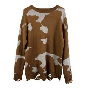 Lucky & Blessed Brown Cow Print Tunic Sweater Small Distressed Oversized