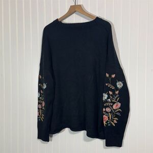 Lucky & Blessed Embroidered Sweater 2X 3X Black Floral Boho Cottagecore Cozy