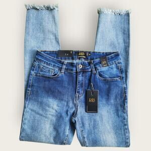 Lucky & Blessed Jeans Women's Sz 8 Blue Denim Mid-Rise Skinny Frayed Hems NWT