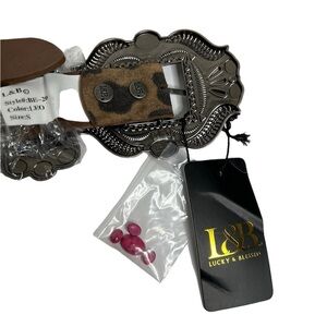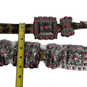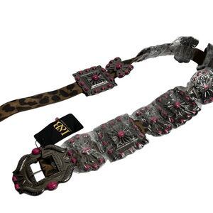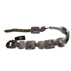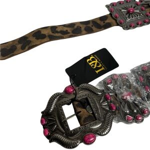 Lucky & Blessed Leopard Pink Turquoise Ribbon Tooled Square Belt