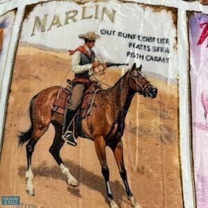 A cozy, nostalgic Western blanket that blends bold cowboy spirit with vintage Americana design — perfect for your ranch, bunkhouse, or living room accent.