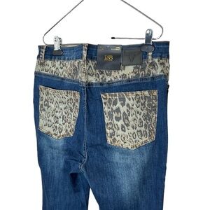 Walk on the wild side with our leopard accent flare jeans. Cuffs can easily be folded down if you just want the subtle splash of contrast on the back and front pockets. Belt loops and zip fly.