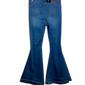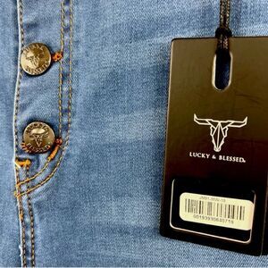 Lucky & Blessed Distressed Button Fly High Waist Mid Wash Flare Jeans NWT