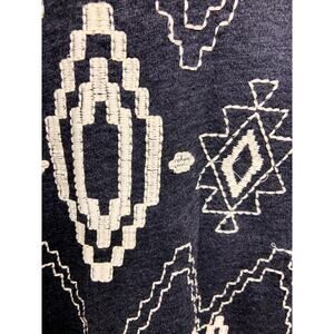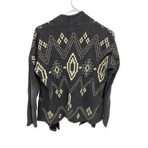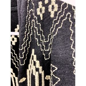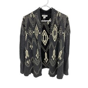Lucky Bliss gray sweatshirt cardigan with Aztec embroidery. Open front.