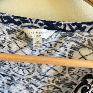 Lucky Bran Floral Print Split Neck Navy Blue Cotton Top Blouse Womens Si…
