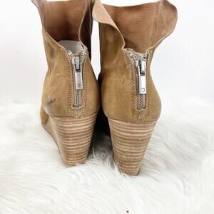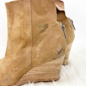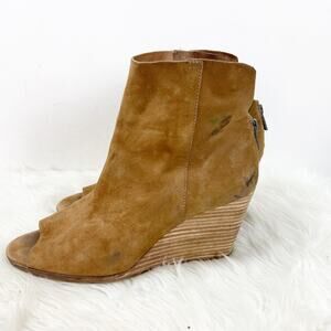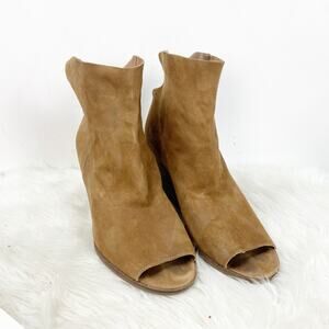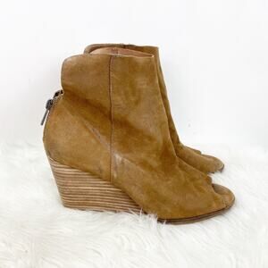 Lucky Brand 10 M Womens Tan Brown Suede Stack Heel Peep ToeWedge Booties