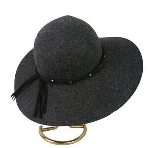 Lucky Brand 100% Wool Dark Gray BOHO HIPPIE Festival/Concert Hat Leather Studs