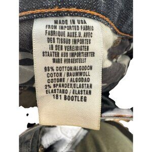 These Lucky Brand 181 Bootleg jeans offer classic five-pocket styling, a straight leg cut, and a comfortable 34x31 size. Crafted from a cotton-spandex blend and made in the USA.