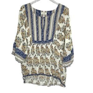 Lucky Brand 1X Womens Mixed Print Peasant Top Floral Boho Hippie