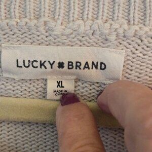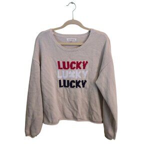 Lucky Brand 2025 Lucky Intarsia Tan Red White Blue Crewneck Sweater Size XL