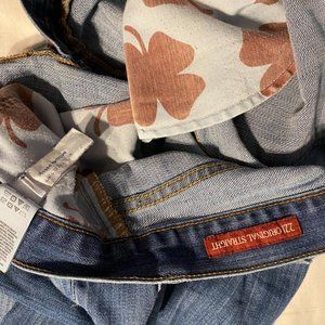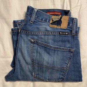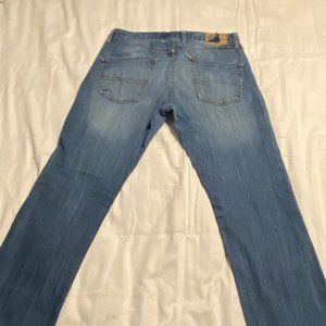 Straight Fit Straight Leg 5 pocket style button fly and closure.