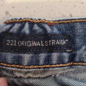 Lucky Brand 221 Original Straight Jeans Mens 34x32 Blue Denim Stretch Distressed