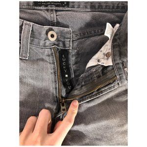 Really great quality jean material -not the flex type, nor the flimsy stuff. These were built to last and they have not been worn more than twice. "Lucky you."