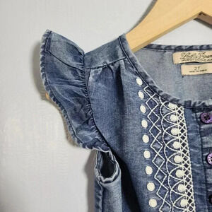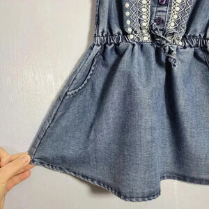 Lucky Brand 2T Blue White Embroidered Button Sleeveless Denim Summer Dress