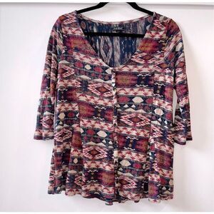 Lucky Brand 3/4 Sleeve Button Up Flowy Hem Top