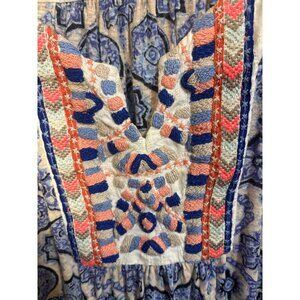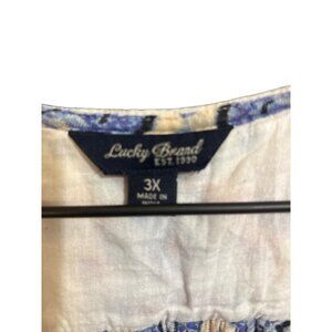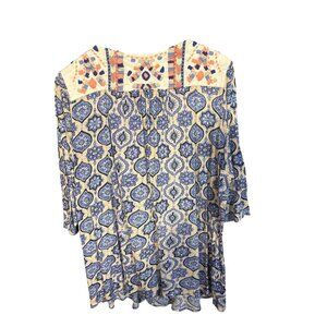 Lucky Brand 3X Womens Boho Tunic Top With Embroidered Neckline & 3/4 Sleeves Blu