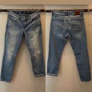 Lucky Brand 4/27 Lolita Crop Jeans | Mid Rise, Light Wash, Distressed Slim Fit