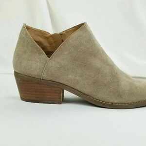 Lucky Brand 8.5M Fenley Womens Side Zip Block Heel Tan Suede Leather Ankle Boots