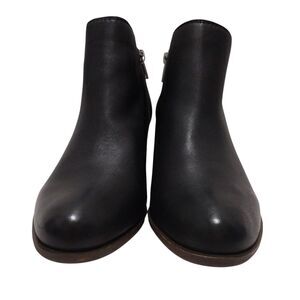 Women's Lucky Brand 9.5 Wide with 1.5" block heel. Style: LK-BASEL Black Glove Nappa double side-zip ankle bootie boots with round toe. Gently worn, outer soles show a light signs of wear (see pics). Great pair of casual boots for work, school, social event or travel and pair great with a pair of jeans or a dress. Comfy shoes with easy zip down access. Comes in the original box. These booties retail for $129 and are currently out of stock in this size and color on the Lucky Brand website.