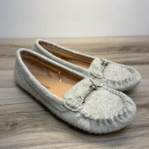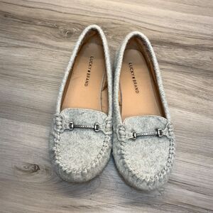 Lucky Brand Abeeku Slip On Moccasins Womens Sz 8M 38 Gray Textile Horsebit Flat