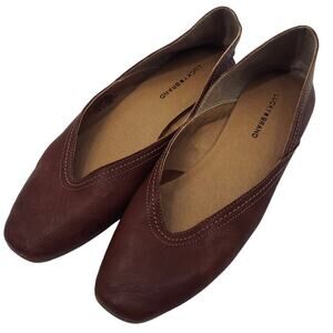 Lucky Brand Alba Leather Flats Rounded Square Toe Ballet Cognac Brown Womens 8.5