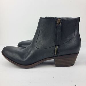 Lucky Brand Womens Basel Side Zip Ankle charcoal black Leather Booties Size 7.5