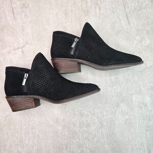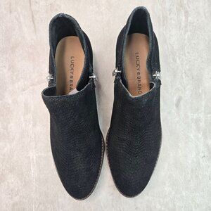 Lucky Brand Ankle Boots Women 7.5 Black Suede Minimalist Western Zip Moto Bootie
