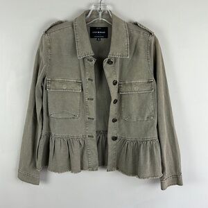Lucky Brand Army Green Button Down Utility Jacket With Peplum Size XS