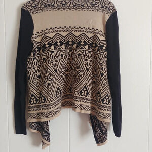 Lucky Brand Aztec Cardigan Sweater Women's Size M Open Front Southwestern Black
