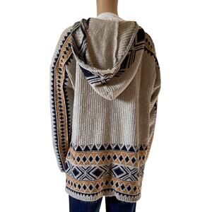 Lucky Brand Aztec Southwest Print Jacquard Knit Hooded Cardigan Women's sz XL