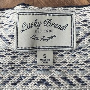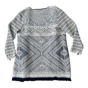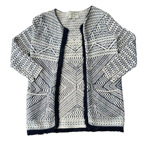 Lucky Brand Aztec Tweed Blazer Size Small Fringe Blue and Cream Knit