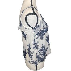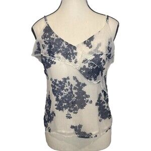 Lucky Brand BLUE Floral Ruffled Adjustable Strap Lined Tank Top Sheer Size Small