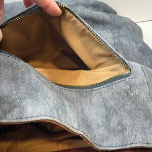 Lucky Brand BOHO Large Distressed Braided Leather Strap Blue Tote Shoulder Bag