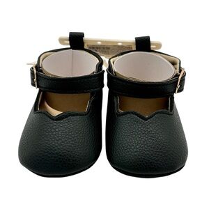 Lucky Brand Baby Girl Crib Shoes | Black Faux Leather Mary Janes | Size 2 (3-6M)