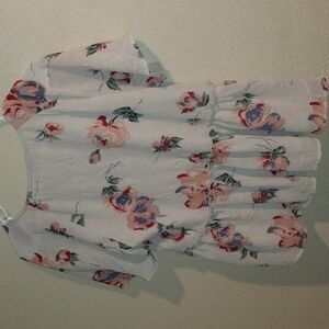 Lucky Brand Babydoll Textured Floral Feminine Short Sleeve Top M. Good pre-owned condition