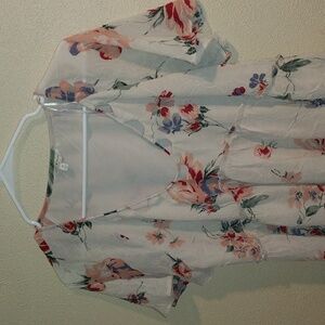 Lucky Brand Babydoll Textured Floral Feminine Short Sleeve Top M