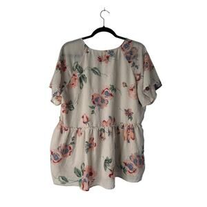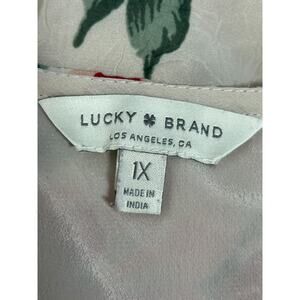 Lucky Brand Babydoll Top Size 1X Light Pink Floral V-Neck Flutter Sleeve Boho